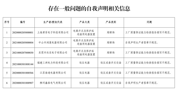 本次核查工作覆蓋實(shí)施CCC認(rèn)證自我聲明評(píng)價(jià)方式的電路開(kāi)關(guān)及保護(hù)或連接用電器裝置、低壓電器、小功率電動(dòng)機(jī)、電動(dòng)工具、電焊機(jī)、家用和類似用途設(shè)備、電子產(chǎn)品及安全附件、車輛及安全附件等全部8類產(chǎn)品。核查發(fā)現(xiàn)14份自我聲明存在報(bào)送空白符合性信息等嚴(yán)重問(wèn)題,441份自我聲明存在報(bào)送信息不規(guī)范等一般問(wèn)題。